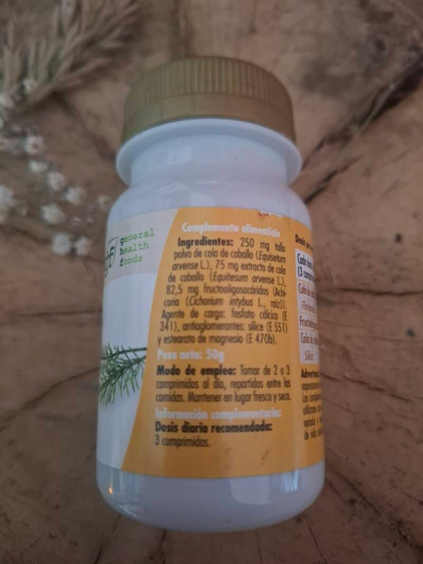 La Cola de Caballo es rica en minerales, particularmente ácido silícico, potasio, ácido oxálico y málico; también contiene taninos y saponinas (Equiosetonina).La cola de caballo, por su composición, tiene propiedades remineralizantes y recalcificantes; aumenta la fortaleza de los tejidos conjuntivos, estimula la regeneración de toda fibra de colágeno y elastina que forman los tejidos. Se emplea en el tratamiento de uñas y cabello frágil, en todo tipo de problemas óseos, estrías, flaccidez mamaria.Por último, por su contenido en flavonoides, tiene propiedades diuréticas, por lo que se emplea en casos de retención de líquidos y cistitis.